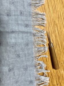 まずは、ストールの端をフリンジにするので、目打ちで糸を抜いていきました。