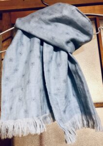 ダブルガーゼなので首に巻いてみると気持ちいいです。今ぐらいの季節に丁度いいストールを作ることが出来ました。