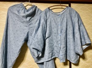 少しボタンの付け方雑になったのと、上着の袖がゆったりすぎたのが失敗です。パジャマだから上着の丈ももう少し長い方がいいかもしれません。