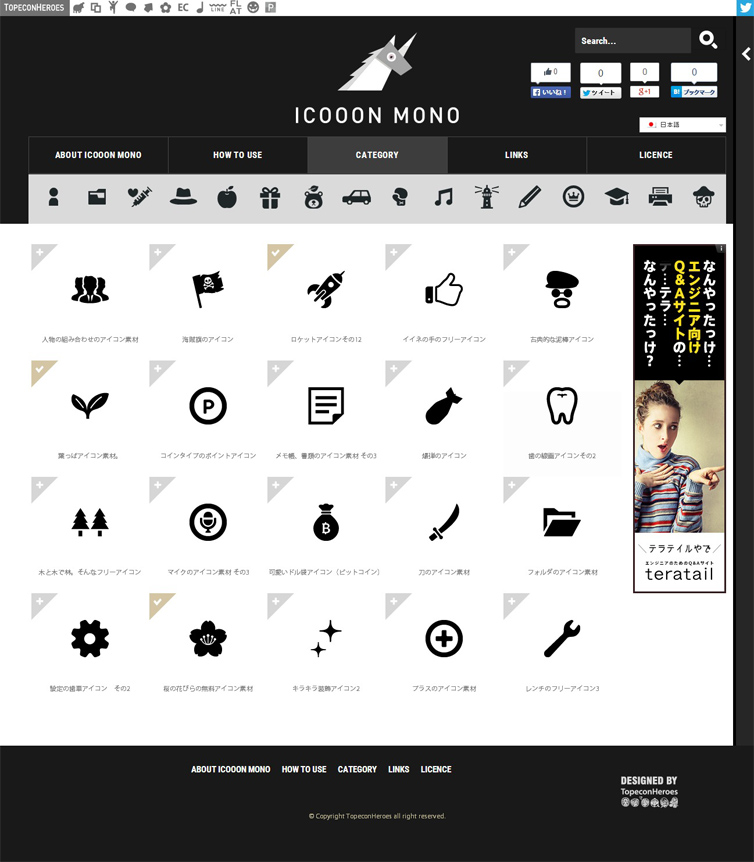 商用利用可能でillustrator形式やEPS形式のデータもダウンロード出来るので加工しやすいのもデザイナーには重宝されそうです。